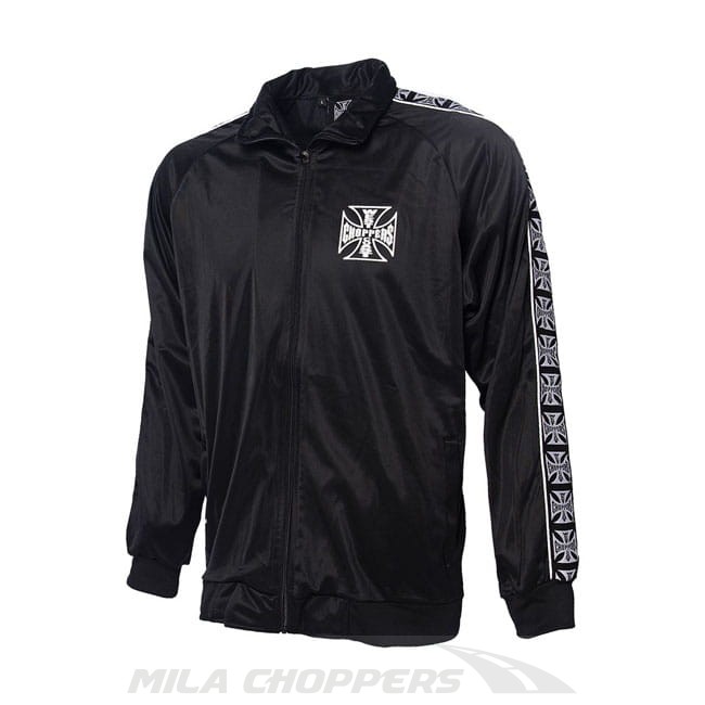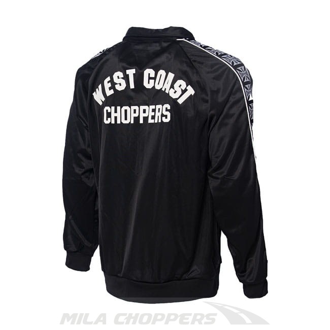 Dopasowany dres ze szczotkowanego trykotu, wykonany w 100% z poliestru, ze ściągaczami na mankietach, nylonowy zamek błyskawiczny z przodu, dwie przednie kieszenie, gumka w pasie i ściągacz w spodniach. Zawiera żakardową taśmę z logo West Coast Choppers z lamówkami na rękawach oraz nadrukowanym logo na piersi i plecach.